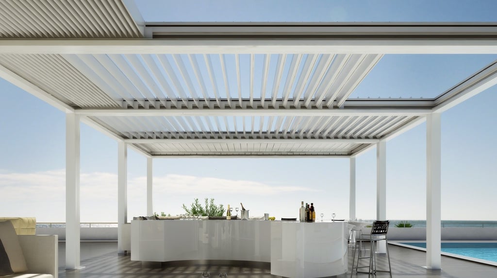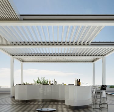 Ezek a tulajdonságok praktikusabbá teszik a Bioklimatikus Pergola használatát nagy területeken, miközben megőrzik esztétikus megjelenését.