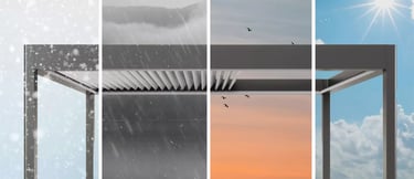 A Bioklimatikus Pergola rugalmas kialakítású, amely képes alkalmazkodni a különféle időjárási körülményekhez. Ez a funkció lehetővé teszi a felhasználó számára, hogy beállítsa a kívánt nyitottságot az olyan lehetőségek között, mint a napozás, a szellőzés és a teljes szigetelés, a felhasználó igényeinek megfelelően.
