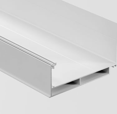 A tartógerenda könnyen használható rendszer, amely teljesen integrálva működik a világító rendszerrel. A világító profil a tartógerendához kapcsolódik, így tökéletes esztétikai illeszkedést biztosít.