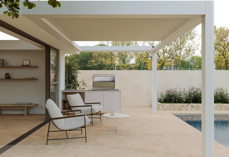 Az Albert Genau Bioclimatic Pergola felhasználóbarát kialakítása maximális kényelmet és rugalmasságot kínál minden évszakban és időjárási körülmények között.